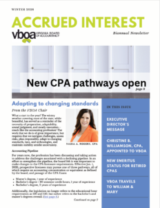 Accrued Interest每年在冬季和夏季发布两次,是VBOA与Virginia会计专业人士的主要沟通渠道之一。